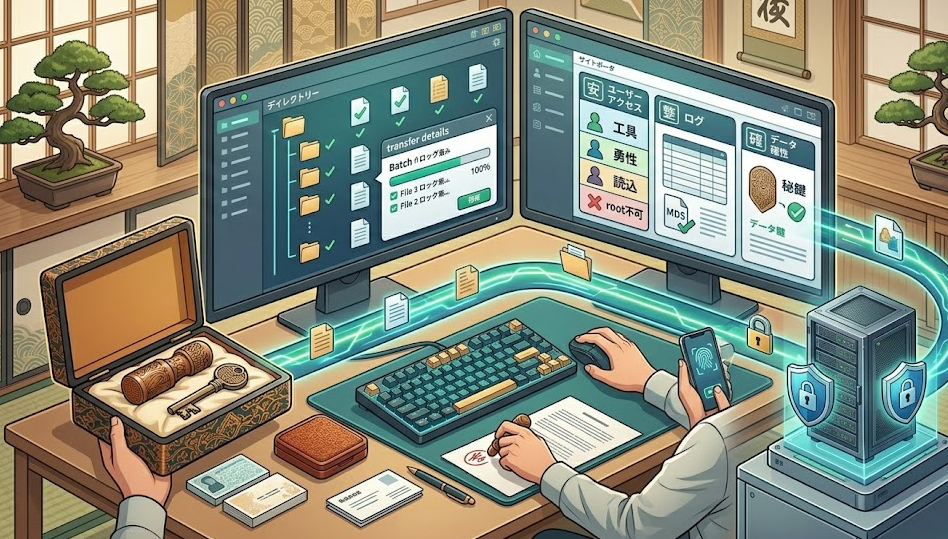取引先から「SFTPでファイルを送ってください」と言われた瞬間、手が止まることありませんか。FTPと何が違うのか、FTPSとは別物なのか、接続情報のどこを入れれ […]