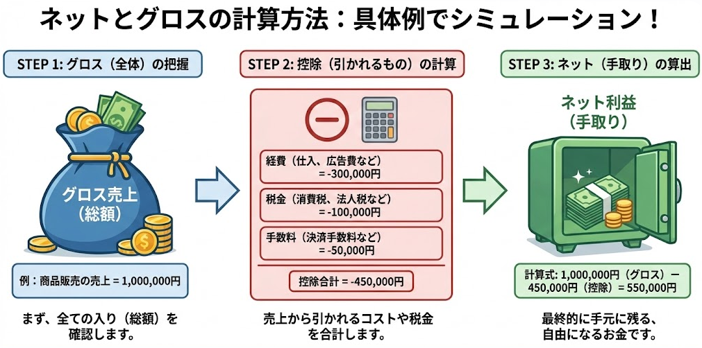 ネットとグロスの計算方法を具体例でシミュレーションする手順