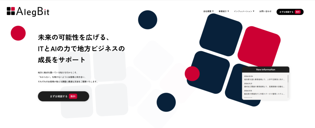 Alegbit株式会社は、ただのデザイン制作会社ではありません。私たちは、企業のビジョンを具体化し、ユーザーに伝える「戦略的なホームページ制作」を得意としています。デザイン美だけでなく、ユーザー体験(UX)やコンバージョン率(CVR)向上にフォーカスし、成果を出すためのホームページを提供します。