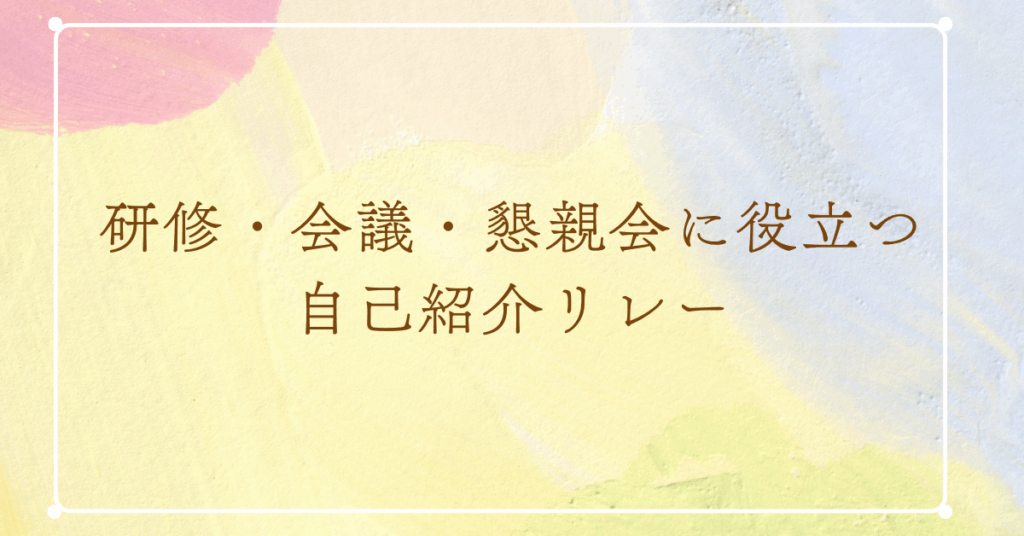 初対面の場で緊張して言葉が出てこない…そんな経験は誰にでもありますよね。研修や会議、懇親会などでスムーズに打ち解けるためには「自己紹介リレー」といったアイスブレイクが効果的です。自己紹介リレーは、場の空気を和ませるだけでなく、参加者同士の... -
