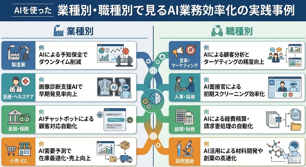 この記事では、企業や個人がAIを活用して業務効率化を実現した具体的な事例を紹介しながら、成果に繋がるおすすめのAIツールや導入のポイントを解説していきます。導入前に知っておきたい注意点や、無料で始められる方法も網羅。初めての方でもすぐに実践できる「現場視点のAI活用術」をお届けします。