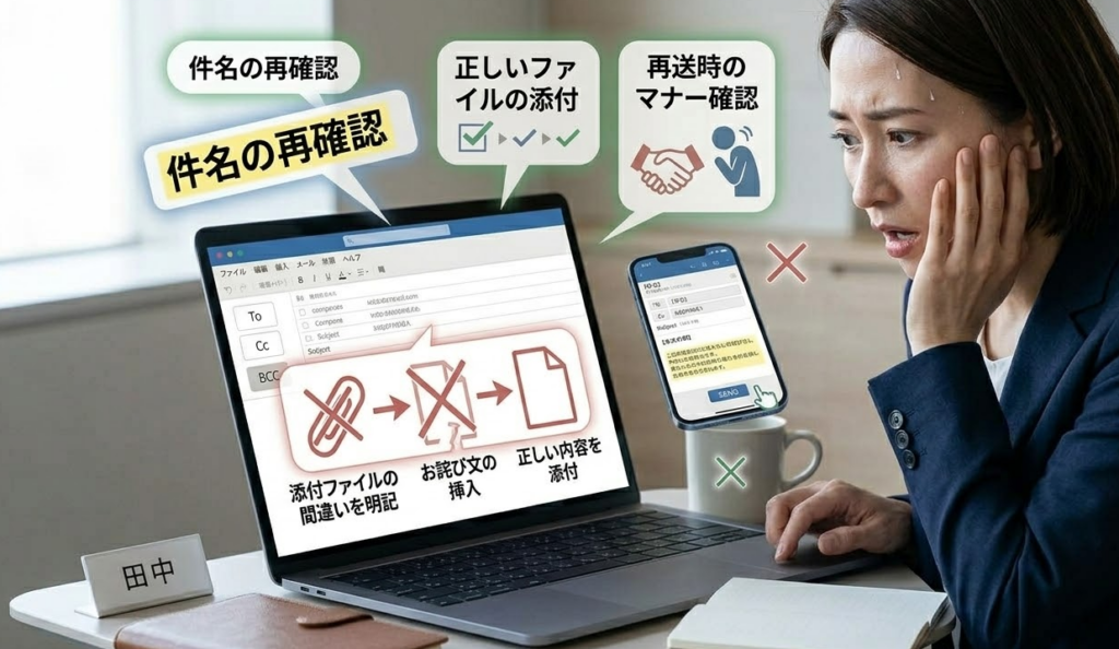 添付ファイルのミスは、ビジネスメールでよくあるトラブルです。