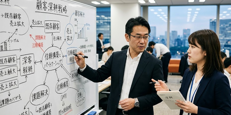 そして一番重要なのは、深耕を言葉で終わらせないことです。既存顧客の未活用領域を見る、担当者の奥にいる決裁者を意識する、問い合わせの背景を細かく分ける。そうした具体的な行動に落として初めて、深耕は仕事の成果につながります。