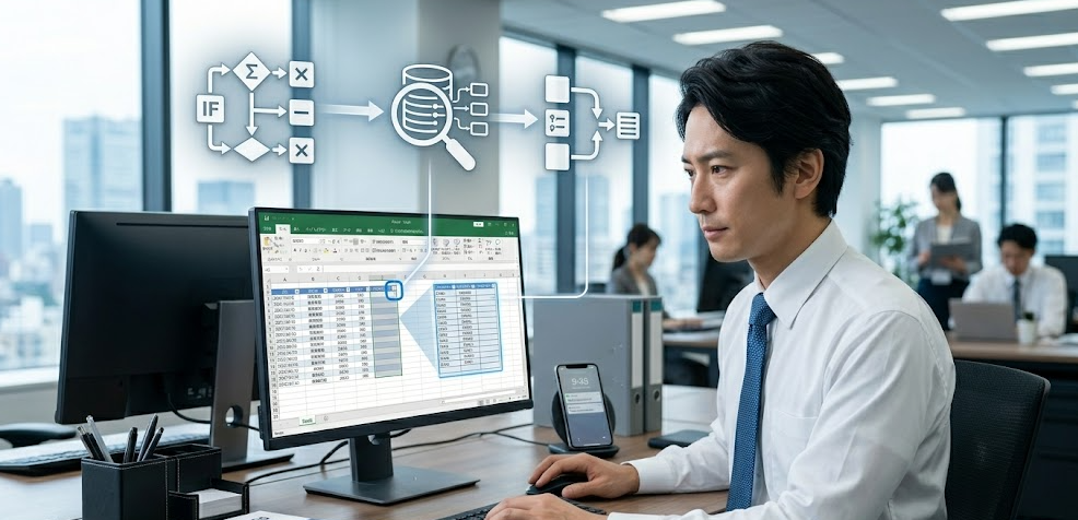 エクセルで入力作業をしていると、「同じ内容を何度も手入力している」「入力ミスでやり直しになった」という場面にぶつかりますよね。特に見積書や顧客リストなど、選択内容によって別の情報を自動表示したいとき、手作業では限界があります。実際、提出直前に「商品名は合っているのに単価が違う」と気づいて全部修正…という経験、ありませんか。