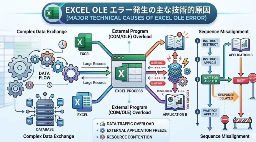 Excelで「別のプログラムでのOLEの操作が完了するまで待機します」が出る原因