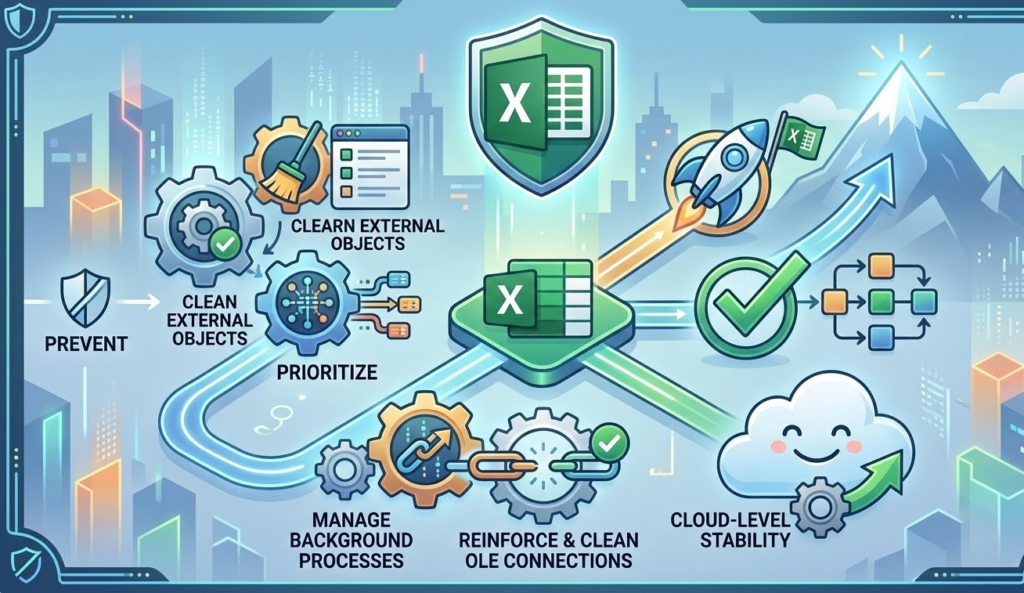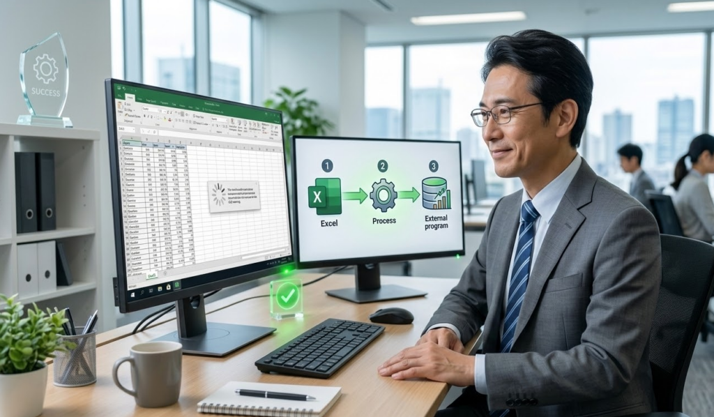 Excelが裏で残っているとエラーが続くので、完全終了させるのがポイントです。