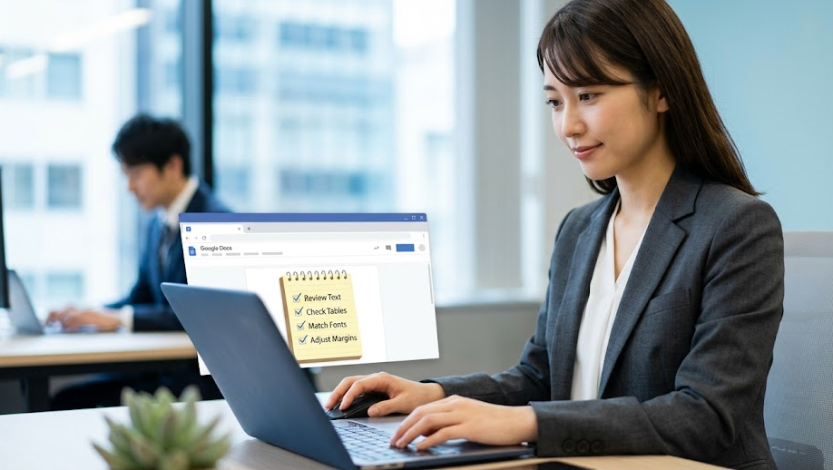 Googleドキュメントで原稿を仕上げて、提出直前にWordへ変換したら、見出しの位置がずれる、表がはみ出す、画像の回り込みが崩れる。そんな場面で手が止まったことはありませんか。しかも相手先から「Wordで提出してください」と言われていると、見た目が崩れたまま出すわけにもいかず、締切前に慌てて修正することになります。