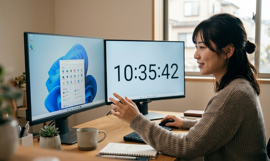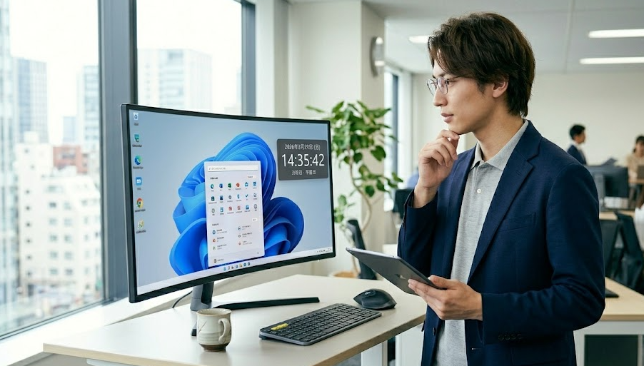 右下の時計が小さくて見づらいまま作業していると、締切直前に時間を見誤って「あ、もうこんな時間か」と手が止まることありませんか。実務ではこの数秒のロスが積み重なり、集中が切れる原因になります。