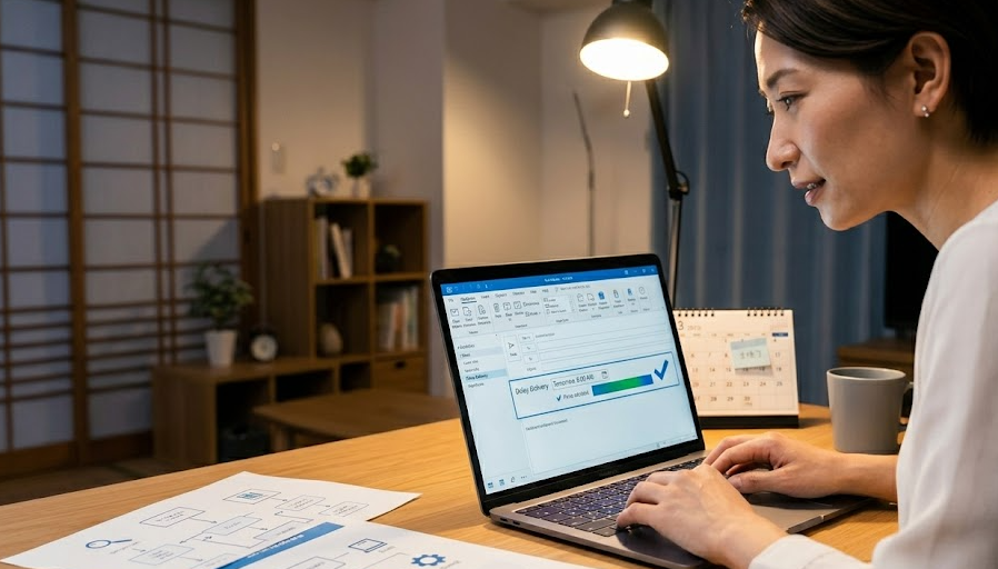 そのまま寝てしまって、朝バタバタしながら送信してミスる…これ、地味に仕事の精度を落とします。