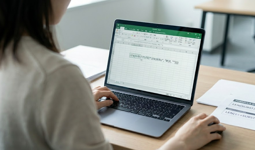 エクセルで「特定の文字を数えたい」と思ったとき、意外と手が止まりませんか。たとえば提出前のレポートで「OK」の数を集計しようとした瞬間、どの関数を使えばいいのか迷って作業が止まる。しかもセル内なのか、複数列なのかでやり方が変わるので、余計に混乱しますよね。