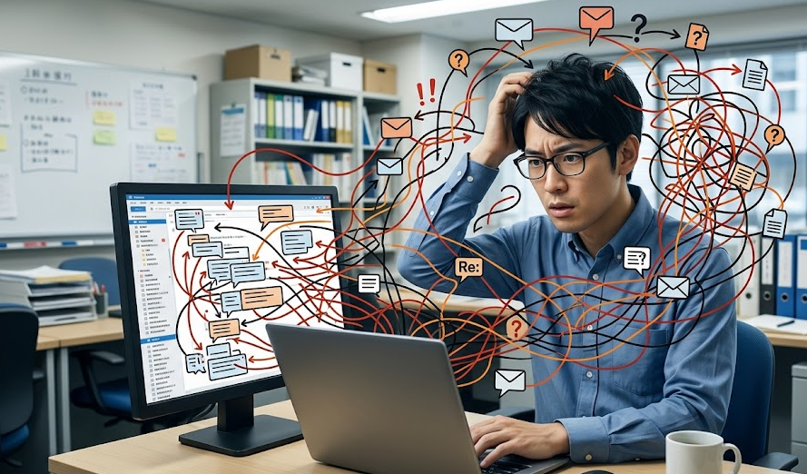 社内外の関係者が増えると、ぶら下がりメールは一気に読みにくくなります。