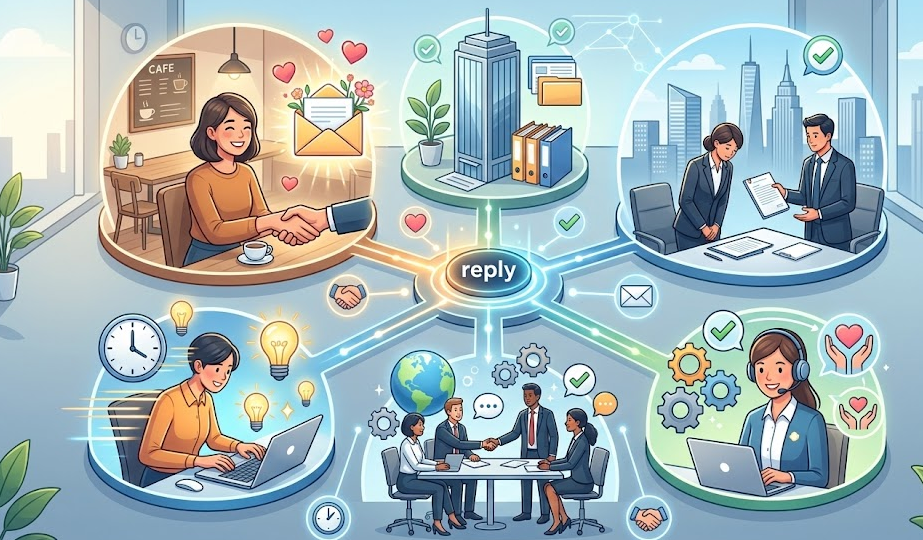 問い合わせ返信やカスタマーサポートで広く使われます。