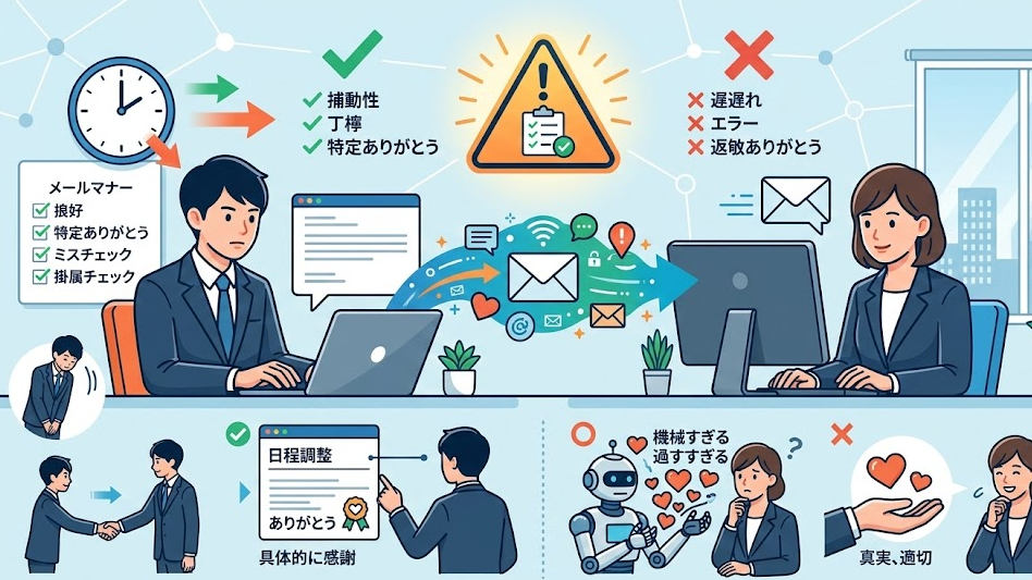 就活メールでは、礼儀正しさだけでなく、「相手への感謝」と「今後の行動」が明確に伝わるよう心がけましょう。