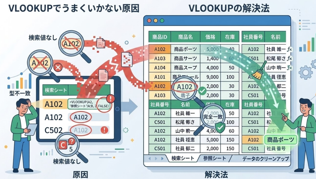VLOOKUPでうまくいかない原因と解決法
