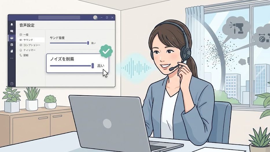 そのあとTeamsやZoomでノイズ抑制を有効にし、声がこもる、途切れる、変に削られる場合だけ音声拡張やBluetooth設定を見直す。この順番が最短です。