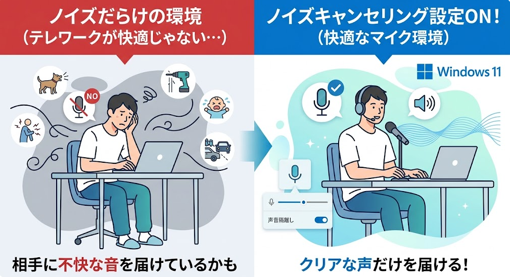 Windows 11でノイズキャンセリングを整えるときは、OSだけで完結させようとしないことが大事です。