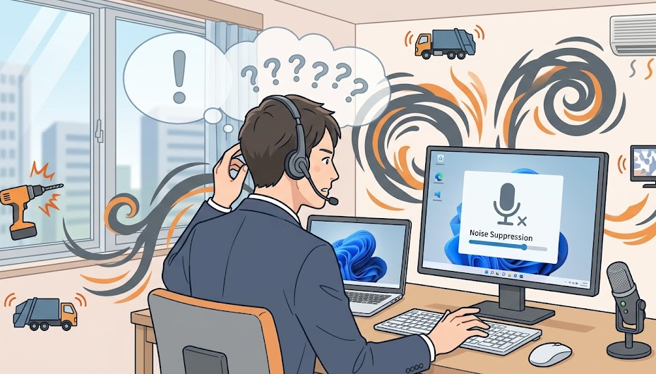 その場合は、Windows標準設定を整えたうえで、TeamsかZoomのノイズ抑制を主戦場にしたほうが速く成果が出ます。これは実務上かなり重要な割り切りです。