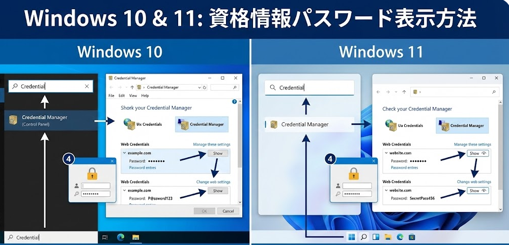Windows 10と11での資格情報パスワード表示方法