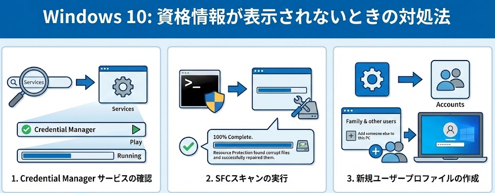 Windows 10で資格情報が表示されないときの対処法