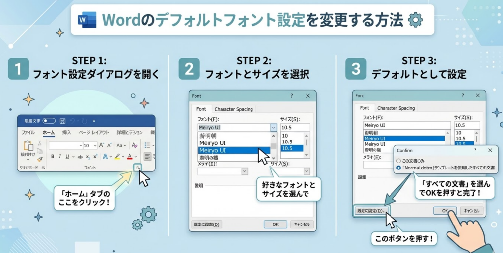 新しいWordファイルを開くたびにフォントを変えるのは面倒ですよね。