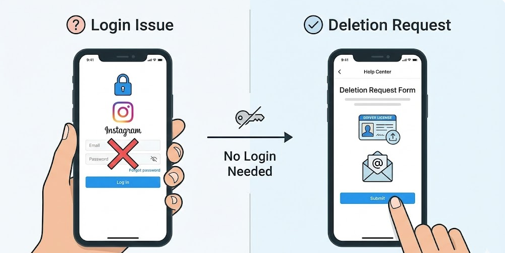 Instagramアカウントの削除は通常ログインが前提ですが、パスワードを忘れた・ログインできない状態でも申請ルートは存在します。ただし、公式削除ページでは対応できず、サポートフォームからの手続きが必要です。