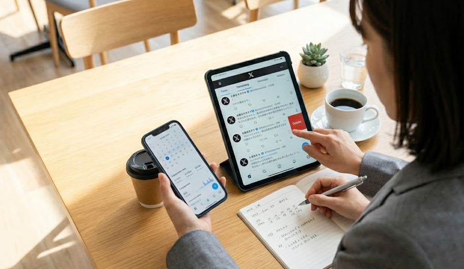 ここで投稿を全部消したくなる人もいますが、一括大量削除はおすすめしません。Xは大量削除や大量削除プログラムの利用について注意を出しており、古い投稿はインデックス制約で表示されないこともあるため、削除行為そのものが状況を分かりにくくします。削除するなら、明らかな重複・違反可能性の高い投稿だけに絞るほうが安全です。