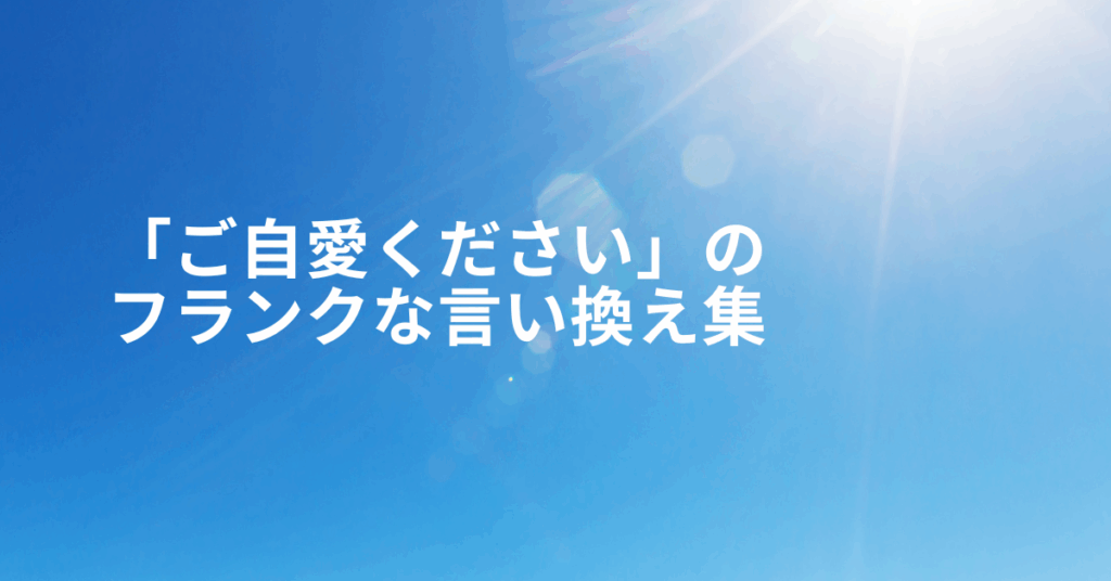 仕事や日常でよく使う「ご自愛ください」という言葉。丁寧ですが、どこかかしこまりすぎて距離を感じることもありますよね。同僚や友達には少し重たい、でも上司や取引先にはきちんとした表現にしたい。そんな悩みを解決するのが本記事です。この記事では...