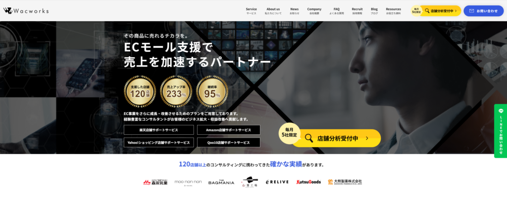 株式会社Wacworksは、EC事業者向けに運用代行・コンサルティングを行うマーケティング支援会社です。