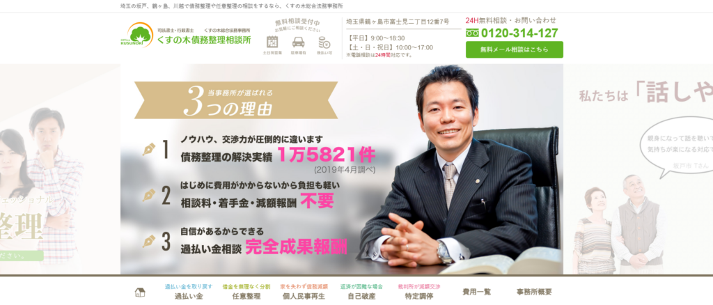 借金問題の相談件数が累計1万件以上という実績をもとに、他事務所にはないノウハウでお客様の経済利益の最大化を目指します。債務整理の疑問にも丁寧にお答えし、埼玉(坂戸、鶴ヶ島、川越、日高、東松山など)を中心に幅広い地域で対応しています。債務整理にお悩みの方は、ぜひご相談ください。