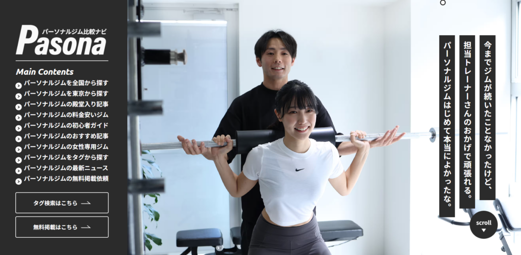 Pasonaは各ジムの特徴はもちろん、ジムの基本知識や失敗しない選び方をまとめているので参考にしてください。