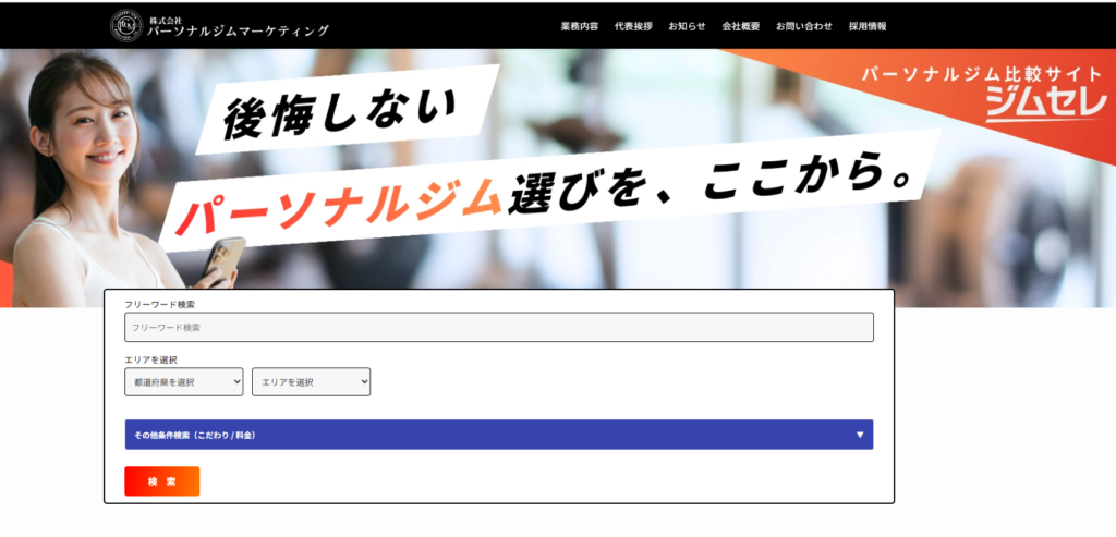 株式会社パーソナルジムマーケティングは、全国のパーソナルジムを対象とした情報プラットフォームの運営や集客・採用・ブランディング支援を手がける企業です。